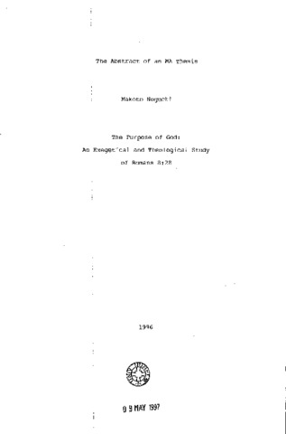The purpose of God: An exegetical and theological study of Romans 8:28