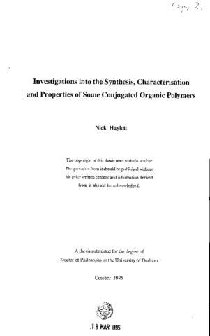 Investigations into the synthesis, characterisation and properties of some conjugated organic polymers
