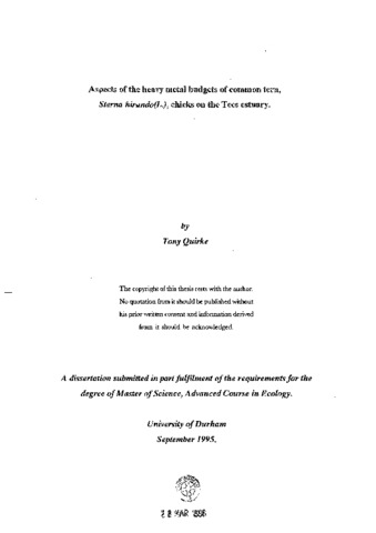 Aspects of the heavy metal budgets of common tern, Sterna hirundo(L.), chicks on the Tees estuary.