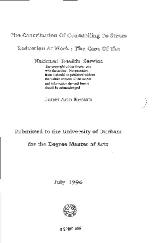 The contribution of counselling to stress reduction at work: the case of the national health service