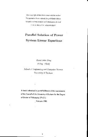 At the heart of many power system computations lies the solution of a large sparse set of linear equations. These equations arise from the modelling of the network and are the cause of a computational bottleneck in power system analysis applications. Efficient sequential techniques have been developed to solve these equations but the solution is still too slow for applications such as real-time dynamic simulation and on-line security analysis. Parallel computing techniques have been explored in the attempt to find faster solutions but the methods developed to date have not efficiently exploited the full power of parallel processing. This thesis considers the solution of the linear network equations encountered in power system computations. Based on the insight provided by the elimination tree, it is proposed that a novel matrix structure is adopted to allow the exploitation of parallelism which exists within the cutset of a typical parallel solution. Using this matrix structure it is possible to reduce the size of the sequential part of the problem and to increase the speed and efficiency of typical LU-based parallel solution. A method for transforming the admittance matrix into the required form is presented along with network partitioning and load balancing techniques. Sequential solution techniques are considered and existing parallel methods are surveyed to determine their strengths and weaknesses. Combining the benefits of existing solutions with the new matrix structure allows an improved LU-based parallel solution to be derived. A simulation of the improved LU solution is used to show the improvements in performance over a standard LU-based solution that result from the adoption of the new techniques. The results of a multiprocessor implementation of the method are presented and the new method is shown to have a better performance than existing methods for distributed memory multiprocessors.