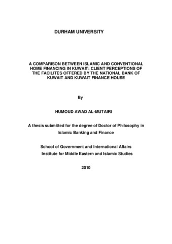 A COMPARISON BETWEEN ISLAMIC AND CONVENTIONAL HOME FINANCING IN KUWAIT: CLIENT PERCEPTIONS OF THE FACILITES OFFERED BY THE NATIONAL BANK OF KUWAIT AND KUWAIT FINANCE HOUSE