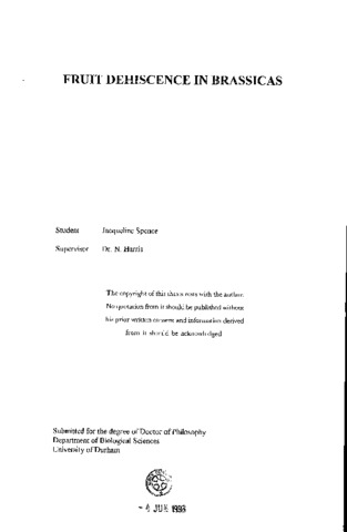 Fruit dehiscence in Brassicas