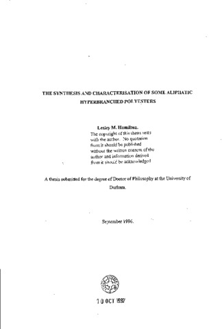 The synthesis and characterisation of some aliphatic hyperbranched polyesters