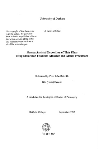 Metal-containing polymer thin films are known to possess interesting electrical, magnetic, optical or barrier properties. Such coatings can be deposited by plasma assisted chemical vapour deposition (PACVD). This technique comprises the fragmentation and rearrangement of metallorganic precursors within a low pressure non-equilibrium electrical discharge. In this work, the deposition of titanium containing species embedded into a polymeric network from titanium tetraisopropoxide (TiTP), Ti[OCH(CH(_3))(_2)](_4), and tetrakis (dimethylamido) titanium (TMT), Ti[N(CH(_3))(_2)](_4), precursors has been investigated as a function of glow discharge power and substrate location. In addition these precursors have been mixed with hydrogen and ammonia gases during PACVD. These metal-containing plasma polymers layers have been characterized by X-ray photoelectron spectroscopy (XPS), attenuated total reflection Fourier transform infrared spectroscopy (ATR-FTIR) and atomic force microscopy (AFM).It has been demonstrated that Ti02/polymer composite layers can be produced using the TiTP precursor with a wide range of stoichiometries. The mixing of hydrogen gas with TiTP create films which are stable towards oxidation and aging. TiTP/ammonia mixtures produced Ti(0,N)/polymer films which contained Ti-N bonds. Injection of TMT into a glow discharge has been found to result in a non-thermally assisted intramolecular alkyl (3-hydrogen activation mechanism to produce Ti(0,C,N)/polymer composite films. The film composition is found to be independent of glow discharge power beyond 5 W. Mixing with hydrogen gas lowers the carbon content due to recombination reactions competing with plasma polymerization. TMT/ammonia mixtures result in a gas phase transamination reaction prior to and during plasma activation causing a drop in the total carbon content due to replacement of the -N(CH(_3))(_2) ligand by –NH(_x).