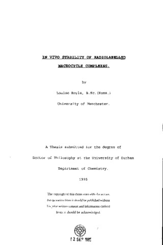 In vivo stability of radiolabelled macrocycle complexes