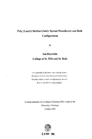 Poly (Lauryl Methacrylate): spread monolayers and bulk configuration