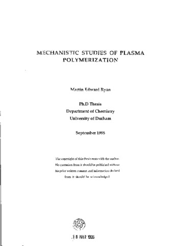 Mechanistic studies of plasma polymerization