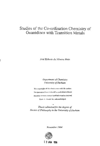 Studies of the co-ordination chemistry of guanidines with transition metals
