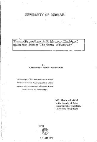 Personally and love in St Maximus ''Ambiguia'' and in max Scheler ''the nature of sympathy''
