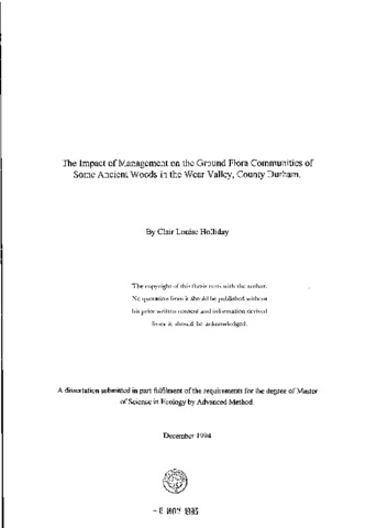 The impact of management on the ground flora communities of some ancient woods in the wear valley, county Durham