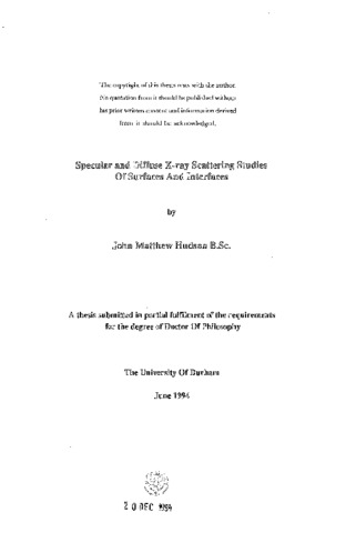 Specular and diffuse X-ray scattering studies of surfaces and interfaces