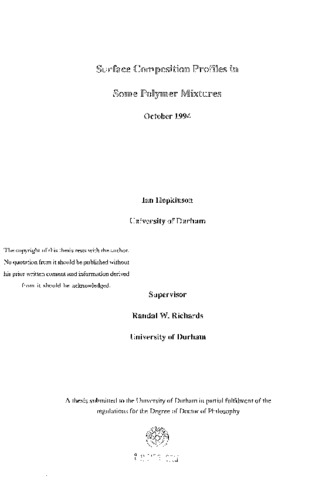 The surface composition of selected polymer mixtures has been studied to a depth of circa 4000Å with a resolution of up to l0Å using neutron reflectometry (NR) and nuclear reaction analysis (NRA). The effective interaction parameters, X, of several blends have been measured as a function of both composition and temperature, using Small Angle Neutron Scattering (SANS) and the incompressible random phase approximation, in order to understand the surface segregation behaviour of the polymer blends. No surface segregation was observed in annealed blends of syndiotactic poly (methyl methacrylate) (h-PMMA) with perdeuterated poly (methyl methylacrylate) (d-PMMA), where the h-PMMA was the majority component with a high molecular weight and the d-PMMA had lower molecular weights. Values of X for these blends showed a chain length disparity effect, higher disparity led to a small negative X. Increases in X were observed at low volume fractions of d-PMMA. Surface segregation of perdeuterated poly (ethylene oxide) (d-PEO) to the polymer - silicon oxide interface of an annealed d-PEO/h-PMMA blend was observed, where the bulk volume fraction of the d-PEO was <0.30. The surface composition profile could not be described by current theory. Measured X values were small and negative and there was a change in X on changing the locus of deuteration from PEO to PMMA in a PEO/PMMA blend. These blends exhibited a decrease in X at low volume fractions of PEO. Polymer brushes were found at the air - polymer interface of a blend of low molecular weight polystyrene (h- PS) with perdeuterated polystyrene with a single perfluorohexane end group (d-PS(F)) or two perfluorohexane end groups (d-PS(F2)). These results were in good agreement with a self consistent field theory. Similar blends of high molecular h-PS / d-PS(F) showed enhanced surface segregation, compared to blends with no perfluorohexane end groups. NR data showed that the surface of a blend of polystyrene with perdeuterated dibutyl phthalate (d-DBP) (a model additive) was enriched with d-DBP over a 30Ålength scale. The loss of d-DBP from a thin film (~ 8OO Å thick) was observed using NR and attenuated total reflection (ATR) infra red spectroscopy.