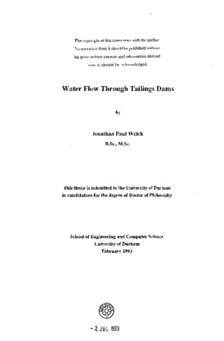 Water levels in tailings dams are generally lower than those of standard earth dams. Previously, other authors have shown that embankment geometry and variation in permeability can be responsible for a concave upwards steady state seepage line. These factors are investigated in greater detail using a finite element program to model flow in the saturated portion of the embankment. It is shown that the angle of the upstream slope only has an appreciable effect on the form of the seepage line if the pond is close to the downstream face of the dam. An increasing permeability in the direction of flow and seepage path length are responsible for reducing the height of the seepage line. This effect is demonstrated for both a continuous variation of permeability and a step jump in permeability between the tailings deposit and the dam. Anisotropy of tailings and dam permeability is also investigated. Transient analyses of saturated flow are performed for tailings dams constructed of dry compacted waste. For this case, the seepage line is straight for a constant pond level, and concave upwards for a rising pond and a low dam permeability. The simple computer model also predicts that for a constantly rising pond level, the seepage line advances at a constant rate dependent on the rate of pond rise, and the material properties of the dam. A fully automatic finite element program has been written, combining an adaptive mesh regeneration algorithm and a variable mesh technique. The program is shown to provide both an accurate and precise solution of the free surface problem. A method of automatically generating "square" flow nets by post-processing the finite element data is presented for the first time. Flow nets provide a visual proof of the correctness of the computer model and are a useful aid to other workers.