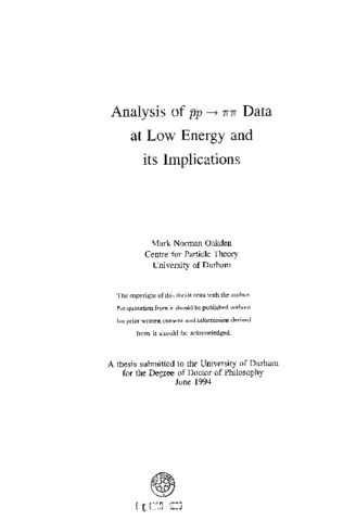 This thesis is a study of data on pp → ππ in the range 0.36 ≤ P(_lab) ≤ 1.55 GeV/c taken by the PS 172 experiment at CERN's LEAR facility. The aim is to elucidate the nature of mesonic states coupling both to baryon-antibaryon and meson-meson channels. The PS 172 data are compared with, and found to be consistent with, earlier data on the same channel, and, in a model independent way, the consistency of the PS 172 results with BNL data on pp pp → π(^0)π(^0) is also established. The first amplitude analysis of pp → π(^0)π(^0) to incorporate the PS 172 data is performed and it is found that from the hundreds of possible amplitudes, only two are compatible with the BNL pp → π(^0)π(^0) data and with threshold conditions. The latter may be applied in a far more rigorous way than has been previously possible since the PS 172 momentum range extends so close to threshold. Both of the solutions found exhibit resonances with spins 0-5 and the masses, widths and couplings of these states are deduced. The lowest spin resonances are found to have such large couplings to NN that they are unlikely to be simple qq states.