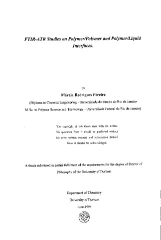 Fourier Transform Infrared Attenuated Total Reflection Spectroscopy (FTIR-ATR) has been employed to study polymer laminates composed of poly (methylmethacrylate) (PMMA) and poly(vinyl alcohol) (PVOH) using different base layer thicknesses and different angles of incidence on a ZnSe substrate. By varying the "barrier" layer of PMMA it has been confirmed that different effective penetration depths into the PVOH are achieved, in very good agreement with the calculated electric field as a function of distance away from the substrate surface. These results show that the two-layered model system can be successfully employed to provide a semi-quantitative depth profile of the laminate. Following the FTIR-ATR study on polymer/polymer interface we have demonstrated how the evanescent field absorption from a IR beam can also be used to monitor in situ the molecular interaction at polymer/liquid interfaces. The chosen system was a series of sulphonated polyethersulphones (SPES) and water. The v(_s)(SO(_3)) and V(_a)(SO(_3)) vibrational modes were monitored as the degree of hydration was varied. It has been found that the v(_3)(SO(_3)) mode increases with hydration suggesting that, with hydration the sulphonic acid groups of SPES are dissociated into SO(_3) ions. It has been found that changes also occur in the benzene ring vibrational band that are dependent on the degree of hydration. Spectral subtraction has been employed to highlight changes in the V(_a)(SO(_3)) mode which were not readily observed in the raw spectra due to overlapping bands. The particular behaviour of V(OH) vibrational mode of water molecules has also been analysed. The main conclusion in this case was that the average hydrogen bond strength of the sorbed water is considerable lower than that in pure water. This would favour an efficient flux of water through the membrane. A method based on monitoring the time dependent change in the v(OH) mode of water has been developed to calculate the diffusion of water on SPES membranes. After reaching a steady state, the normalised absorbance plot versus time has been used for numerical evaluation. Two models have been developed, one for Fickian diffusion and another for the dual sorption mode. The experimental results show a much better agreement for the second model. The diffusion coefficient values have been calculated for different samples and interesting variations of the diffusion coefficient as a function of sulphonation level, solvent and film thickness have been analysed in detail.