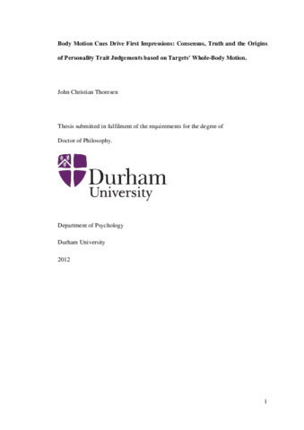 Body Motion Cues Drive First Impressions: Consensus, Truth and the Origins of Personality Trait Judgements based on Targets' Whole-Body Motion.