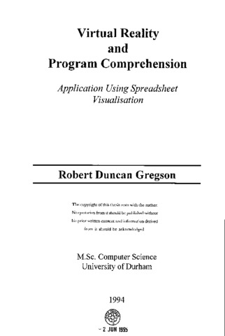 Virtual reality and program comprehension: application using spreadsheet visualisation