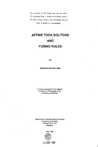 This thesis is concerned with various soliton solutions to some of the affine Toda field theories. These are field theories in 1+1 dimensions that possess a rich underlying Lie algebraic structure and they are known to be integrable. The soliton solutions occur as a result of the multi-vacua that appear in the field theory when the coupling constant is taken to be purely imaginary. In chapter one a review of the affine Toda field theories is undertaken. This is meant to be a relatively complete and exhaustive survey of the literature that has appeared on the subject in recent years. A brief introduction to the theory of solitons and the methods of obtaining such solutions in field theory is given in chapter two, resulting in the construction of the relevant machinery for the Toda theories. In chapter three, Hi rota's method is used to construct single and double soliton solutions to these theories. As a consequence of these explicit formulae the fusing structure of the solitons may be investigated and shown to be equivalent to that found in the classical particle regime, supplemented by further 'annihilations' of 'soliton-antisoliton'. The calculations of the double soliton solutions are claimed to be original in this context. The fusing has also been examined by Olive, Turok and Underwood(^16) through an abstract group-theoretical approach to the affine Toda field theories, however very few explicit formulae are given by them, and hence all the solutions given here are important in their own right. An algebra-independent analysis of such phenomena is undertaken in chapter four where a vertex operator construction is given for the relevant interaction functions. Some properties of these functions are noted; (some of these facts correspond with those in [16] concerning the fusing structure of the solitons).