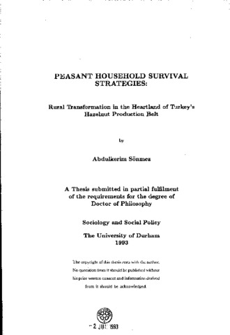 This study analyses the dynamics of persistence of the peasantry in a capitalist social formation through a case study of a village (Kayadibi) of hazelnut producers in the Central Black Sea region of Turkey. In the analysis the peasant household is given analytical priority as it is seen to be the single most important social institution through which the peasantry interacts, condition and is conditioned by the wider social, economic and political structures. Within such an analytical framework, this study concentrates on three areas of inquiry concerning the dynamics of survival of peasant modes. This is carried out in the context of the process of rural socio-economic transformation which took place under the impact of capitalism and with the start of hazelnut production for the world market in the early nineteenth century. These are: (1) the historical and contingent factors which contributed to the emergence and decline of big land- ownership and the new forms of development of capitalism in agriculture; (2) the areas of disputes and clashes of interests between the peasantry, the state and the merchants concerning the actual form of organization of the commodity and credit markets and further development or restriction of hazelnut production in the country; and (3) the patterns and mechanisms which enable the peasant households to have continuous access to land, labour and credit. The thesis arrives at the conclusion that the key to the persistence of the peasantry, as a property-owning social category of the society in a capitalist formation, is its strategy of diversifying its sources of income in order to decrease the degree of its dependency on land-bound agricultural production. This is combined with the strategy of consolidating its savings in the means of production in its own possession instead of using them to improve its standards of living and consumption.