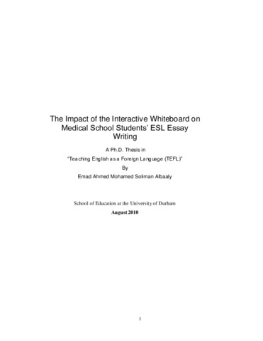The Impact of the Interactive Whiteboard on Medical School Students' ESL Essay Writing