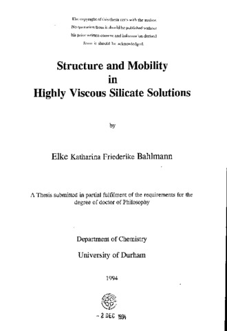 This thesis is concerned with the investigation of highly condensed, highly viscous silicate systems by means of NMR methods (mainly 29si-NMR investigations). The work focused on silicate solutions containing colloidal particles in sol and gel form with the interest of the work centred on the systems near the sol/gel-transition. Quantitative information about the behaviour of silicate species in these silicate systems is presented and some information about die role of protons and sodium cations in the silicate solutions is provided The structure of the colloidal material existing in these highly condensed silicate systems is investigated along with the behaviour of colloidal particles in several situations such as decreasing alkalinity or changing Si02-concentration. Additionally an idea of the range of particle sizes in the colloidal material in highly-condensed silicate solutions has been obtained. The dynamics of the silicate systems were studied in terms of rotational mobility as well as diffusive motion. Exchange processes between silicate species were monitored using ID-exchange spectroscopy. An investigation of the influence of additives, in particular surfactants, on highly condensed silicate systems was carried out by adding representative surfactants of the categories cationic, anionic and non-ionic.