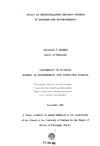 Many of today's complex systems require effective decision making within uncertain distributed environments. The central theme of the thesis considers the systematic analysis for the representation of decision making organisations. The basic concept of stochastic learning automata provides a framework for modelling decision making in complex systems. Models of interactive decision making are discussed, which result from interconnecting decision makers in both synchronous and sequential configurations. The concepts and viewpoints from learning theory and game theory are used to explain the behaviour of these structures. This work is then extended by presenting a quantitative framework based on Petri Net theory. This formalism provides a powerful means for capturing the information flow in the decision-making process and demonstrating the explicit interactions between decision makers. Additionally, it is also used for the description and analysis of systems that axe characterised as being concurrent, asynchronous, distributed, parallel and/ or stochastic activities. The thesis discusses the limitations of each modelling framework. The thesis proposes an extension to the existing methodologies by presenting a new class of Petri Nets. This extension has resulted in a novel structure which has the additional feature of an embedded stochastic learning automata. An application of this approach to a realistic decision problem demonstrates the impact that the use of an artificial intelligence technique embedded within Petri Nets can have on the performance of decision models.