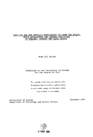 Services for the mentally handicapped children and adults: Their development and current provisions in England, Germany and Saudi Arabia