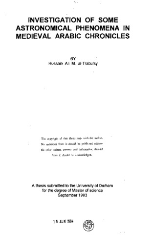 Medieval Arabic observational records of comets, meteors, meteor showers, solar and lunar eclipses are translated from the original Arabic chronicles. A comparison is made between each Arabic cometary record with East Asian observations. Specific investigation of Halley's comet has been made. The frequency of meteor showers is compared with the known prominent meteor showers. The recorded observations of different types of solar and lunar eclipses have been studied. The accuracy in the recording of the time of beginning and ending and the magnitude of the eclipse are also studied and compared with the present-day calculations. In addition, the different methods of recording of the local time of the eclipse and the magnitude are discussed.