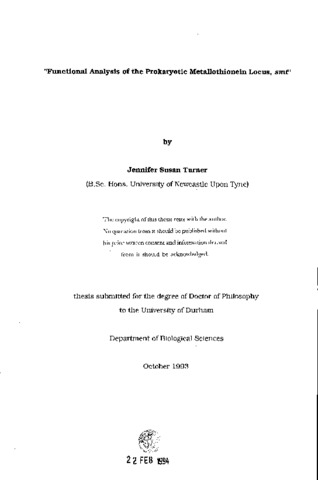 "Functional analysis of the prokaryotic metallothionein locus, smt"