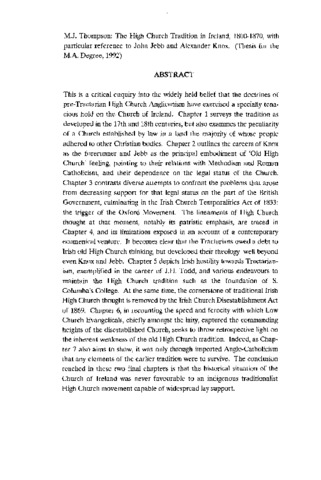 The high Church tradition in Ireland 1800-1870 with particular reference to John Jebb and Alexander Knox
