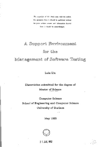 A supportive environment for the management of software testing
