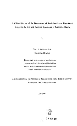 This thesis describes studies directed towards the preparation of oxo compounds of the early transition metals with a view to assessing their potentials for exhibiting distortional and bond-stretch isomerism. Analogous sulphido complexes in the case of the M(E)X(_3)(PMe(_3))(_3) system (M= Nb, Ta; X= CI; E= S) have also been investigated in detail to provide a contrast with another chalcogenide element and further aid an understanding of the phenomenon of bond-stretch isomerism. Chapter 1 reviews the body of evidence to date on the phenomena of distortional and bond-stretch isomerism, and considers possible theoretical origins for the phenomena. Chapter 2 describes the detailed study of distortional isomerism in the six coordinate series of complexes Mo(O)X(_2)(PMe(_2)Ph)(_3) (X= CI, Br, I) and confirms the existence of two pure blue forms for the chloro and bromo cases. Chapter 3 assesses the evidence for further examples of distortional isomerism in the complexes W(O)Cl(_2)(PMe(_2)Ph)(_3), Mo(O)(NCS)(_2)(PMe(_2)Ph)(_3) and Mo(O)Cl(_2)(Pet(_2)Ph)(_3). Structural characterisation by X-ray crystallography has indicated the existence of a link between the orientation of the aikyl and aryl substituents on the phosphine ligands and the general features observed in their infrared spectra. Chapters 4 and 5 describe the seven coordinate oxo and sulphido-halide derivatives of niobium and tantalum which exhibit the phenomenon of bond-stretch isomerism. Compounds studied include M(E)X(_3)(PMe(_3))(_3) (M= Nb, E= O, S, X=C1, Br; M= Ta, E= S, X=Cl). The structures of these compounds have been re-investigated by X-ray crystallography in order to assess the significance of the co-crystallised isostructural NbCl(_4)(PMe(_3))(_3) contaminant. Chapter 6 summaries the evidence for and against distortional and bond-stretch isomerism. Chapter 7 gives experimental details for chapters 2-5.