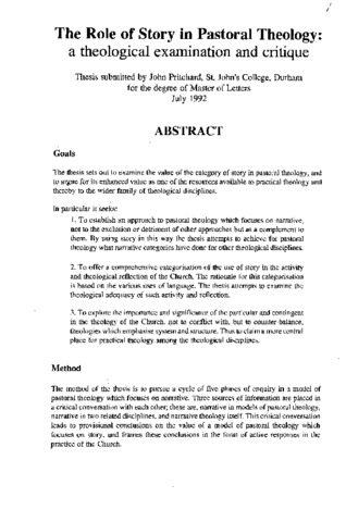 The Role of Story in Pastoral Theology: a theological examination and critique