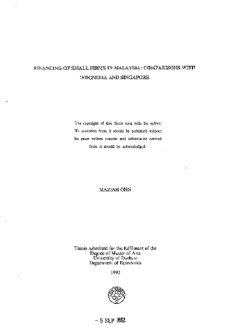 Financing of small firms in Malaysia: comparisons with Indonesia and Singapore