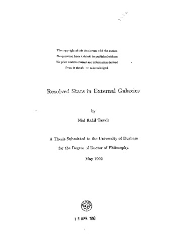 Resolved stars in external galaxies