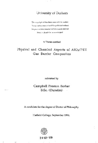 Physical and chemical aspects of A10(_x)/PET gas barrier composites.