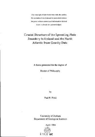 Gravity datasets from two geothermal areas in Iceland, an Iceland-wide gravity dataset, and marine gravity data from the Reykjanes Ridge at 58˚N, which can be seen as the submarine extension of the Icelandic accretionary system, have been studied in this thesis. Results of previous local earthquake seismic tomography studies of the shallow crustal structure of two spreading segments in Iceland have been used, in conjunction with gravity observations, to assess the fidelity of the tomographic method and further refine the description of the crustal structure for these areas. This was accomplished by predicting the component of the observed gravity field which may be produced by the tomographically imaged bodies and in the process attempting to explain any residual anomalies. Results showed additional shallow structure inferred from gravity observation and suggested that local earthquake seismic tomography can 'overlook' some geological structure. The Icelandic gravity field was separated into long and short wavelength components which were attributed to mantle plume and crustal effects, respectively. Physical parameters were attributed to the sources of these anomalies where possible. Results showed that a simple cylinder model (radius -100 km) of anomalous mantle density (~ - 35 kg m(^-3)) could explain the large scale gravity field over Iceland. Shallow density variations in the top 1 km of the crust appeared to be mainly responsible for smaller scale gravity anomalies. A simple Bouguer slab model suggests that the crust may be ~7 km thicker beneath Iceland compared to neighbouring oceanic areas, consistent with an underplating mechanism for crustal accretion in Iceland. Gravity data were acquired on a cruise over the Reykjanes Ridge in the North Atlantic. The marine gravity data were reduced systematically to a residual anomaly and showed that there was the possibility of crustal thinning associated with a bathymetric offset which was interpreted as a second order discontinuity. The form of the residual gravity was similar to other discontinuities of this order on the Mid-Atlantic Ridge, although not of the same amplitude.