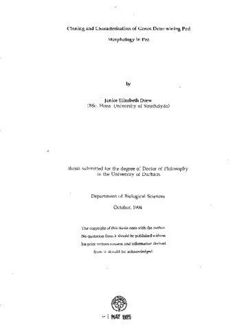 Cloning and characterisation of genes determining pod morphology in pea
