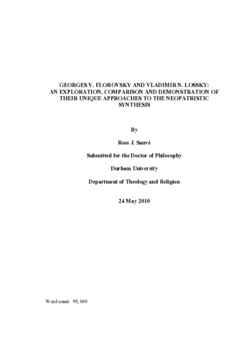 GEORGES V. FLOROVSKY AND VLADIMIR N. LOSSKY: AN EXPLORATION, COMPARISON AND DEMONSTRATION OF THEIR UNIQUE APPROACHES TO THE NEOPATRISTIC SYNTHESIS