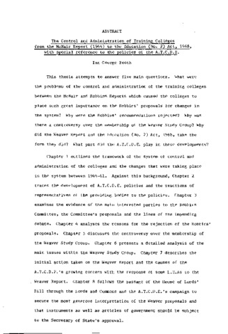 The control and administration of training colleges from the McNair report (1944) to the education (No. 2) Act, 1968, with special reference to the policies of the A.T.C.D.E