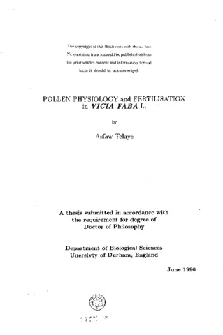 Pollen physiology and fertilisation in Vicia Faba L