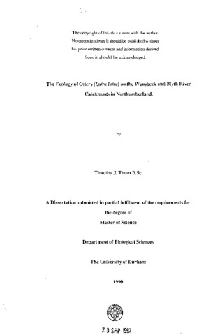 The ecology of otters (Lutra lutra) on the Wansbeck and Blyth river catchments in Northumberland