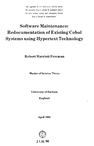 Software maintenance: redocumentation of existing Cobol systems using hypertext technology