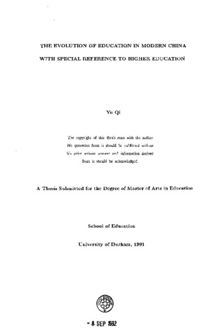 The evolution of education in modern China with special reference to higher education