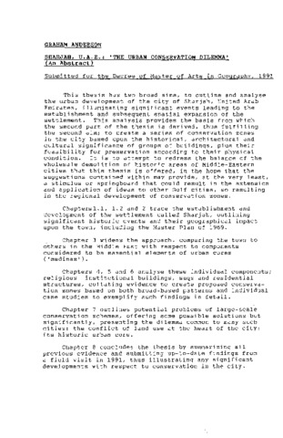 This thesis has two broad aims, to outline and analyse the urban development of the city of Sharjah, United Arab Emirates, illuminating significant events leading to the establishment and subsequent spatial expansion of the settlement. This analysis provides the basis from which the second part of the thesis is derived, thus fulfilling the second aim; to create a series of conservation zones in the city based upon the historical, architectural and cultural significance of groups of buildings, plus their feasibility for preservation according to their physical condition. It is to attempt to redress the balance of the wholesale demolition of historic areas of Middle-Eastern cities that this thesis is offered, in the hope that the suggestions contained within may provide, at the very least, a stimulus or springboard that could result in the extension and application of ideas to other Gulf cities, so resulting in the regional development of conservation zones. Chapters 1.1, 1.2 and 2 trace the establishment and development of the settlement called Sharjah, outlining significant historic events and their geographical impact upon the town, including the Master Plan of 1959.Chapter 3 widens the approach, comparing the town to others in the Middle East with respect to components considered to be essential elements of urban cores ('medinas').Chapters 4, 5 and 6 analyse these individual components; religious institutional buildings, suqs and residential structures, collating evidence to create proposed conservation zones based on both broad-based patterns and individual case studies to exemplify such findings in detail. Chapter 7 outlines potential problems of large-scale conservation schemes, offering some possible solutions but significantly, presenting the dilemma common to many such cities: the conflict of land use at the heart of the city: its historic urban core. Chapter 8 concludes the thesis by summarizing all previous evidence and submitting up-to-date findings from a field visit in 1991, thus illustrating any significant developments with respect to conservation in the city.