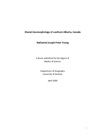 | Uncontrolled Keywords | MSc, Durham University, Glacial geomorphology, Ice Streams, Alberta, moraine, hummocks, transverse ridges, meltwater channels, SRTM |