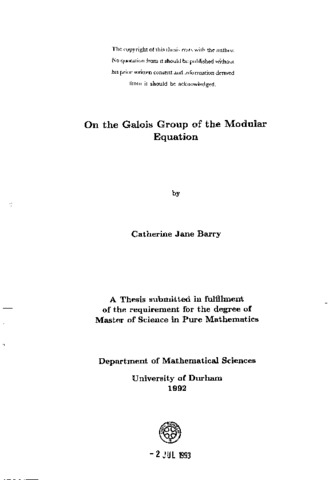 This thesis looks at a method of generating infinitely many extensions of the rationals with Galois group PGL(_2)Z(_n)). Firstly, the Galois group of the modular equation over Q(j) is shown to be PGL(_2)(Z(_n) by considering the n-th division points on an elliptic curve. Then, using Hilbert's Irreducibility Theorem and work discussed by Lang, we show that there are infinitely many rational values of such that this Galois group does not reduce in size. Finally, an equation whose roots generate the same extension as the modular equation but which has much smaller coefficients is found, based on work by Cohn.
