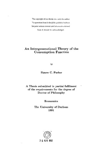 This thesis presents a theory of the consumption function called the 'Inter- Generational Hypothesis' (IGH). The theory starts from the premise that individuals derive utility not only from their own consumption, but also from the welfare of their offspring. Individuals are supposed to maximise an intergenerationally altruistic utility function subject to a lifetime budget constraint and so derive their optimal consumption and bequest plans. From these plans, it is possible to construct an individual's consumption function. This contains earnings and inheritance terms, and is non-linear in earnings; this is consistently aggregated over all living individuals to yield the aggregate IGH consumption function. A feature of this function is the rich set of intergenerational information hypotheses it is able to encompass; there are also several implications with respect to earnings redistribution policy. The IGH function is estimated using 23 years of post-war UK data, and tested against rival consumption models, including Hall's (1978) REPIH. The principal finding is that the data do not appear to be consistent with either model in their pure form; however, they support a hybrid consumption function where a proportion of the population behave according to the altruistic IGH, and where the rest behave according to the 'selfish' REPIH. An additional finding, necessarily tentative given the imperfections of the distributional data, is a failure to detect significant non-linearity in the aggregate consumption function. This result casts doubt on the usefulness of policies designed to redistribute incomes in order to affect aggregate consumption.