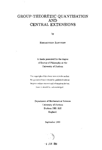 This work is concerned with the applications of Isham's group-theoretic quantisation programme to simple systems which involve central extensions of some symmetry group. Of particular interest are those systems with a 'Wess-Zumino'-like term in their actions where other nontrivial modifications are necessary. In Chapters 1 and 2, a review of the necessary tools used in this work as well as outlines of the group-theoretic quantisation programme are given to facilitate a smooth discussion in the latter chapters. The programme is first exemplified by the normal quantum mechanics on R". This example also involves central extensions but of a slightly different nature from those which arise from systems with a 'Wess-Zumino'-like term. Chapter 3 forms the core of the whole work. The discussions there provide the basis for further examples. It is concerned with the group-theoretic quantisation of the system of a particle moving on the two-torus in a constant magnetic field with quantised flux. The case without the magnetic field is also given for comparison. The canonical group for the case with the magnetic field is required to be the central extension of the universal cover of the canonical group for the case without the magnetic field. These results are then generalised to the corresponding systems on the n-torus. Chapter 4 is a digression from the main topic of quantisation and central extensions to the discussions of a-models with Wess-Zumino term. The main purpose of this chapter is to provide a parallel between these σ-models and the systems of a particle moving in a magnetic field (as in Chapter 3). The general construction of a Wess-Zumino term is given along with the discussion of an Abelian gauge symmetry that the term provides for the σ-models. The a-models can be interpreted as systems of a 'particle' moving on an infinite-dimensional configuration space in a background 'functional magnetic field'. This interpretation is further reinforced by the discussions of Noether's theorem and topological effects.